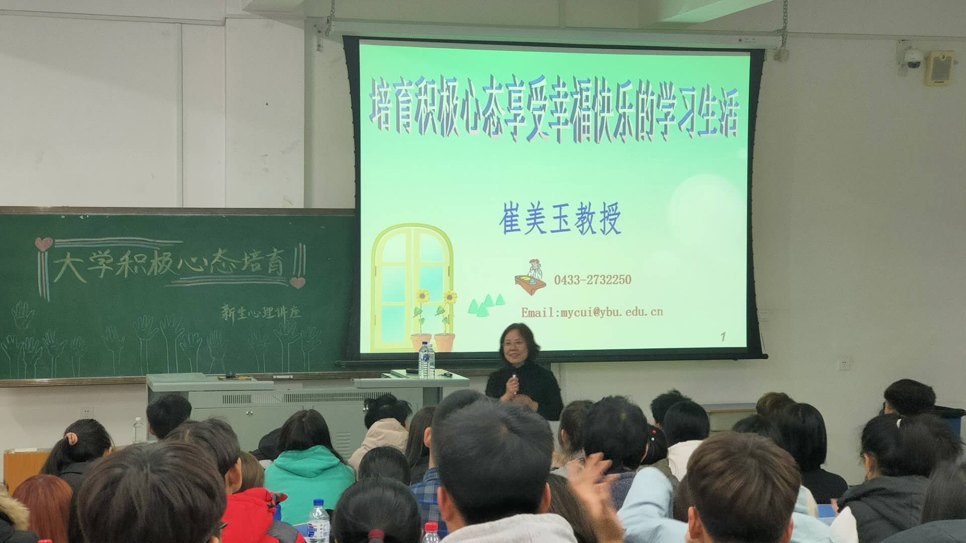 新生心理讲座。此次讲座由延边大学心理健康教育与咨询中心主任崔美玉教授主讲。
