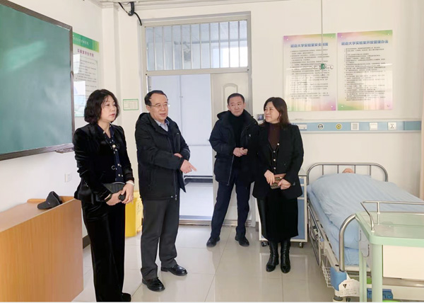 2021年1月11日上午,李宝奇副书记莅临437437必赢国际官网就实验室安全检查及排查消防安全隐患工作进行现场调研,学院党委书记金鸿雁、院长崔文香及相关部门负责人参加。崔文香院长就学院安全检查工作部署情况及放假前安全自查情况进行了详细汇报。李宝奇副书记到基础护理实验室、多功能学术厅、示教室等房间进行了实地调查走访和检查。他强调已下几点:一是时刻加强全院师生的安全意识、层层落实责任,站好放假前的最后一班岗,寒假前一定要再一次做好实验室及各办公室的水电等安全检查工作,确保校园安全。 二是寒假期间要严格执行好值班制度,强化全员意识,明确责任主体,强化责任追究,形成长效机制。三是进一步加强疫情防控意识,落实“人盯人”管理责任,严格履行师生外出报备制度,严格做好师生防护,确保师生安全。
