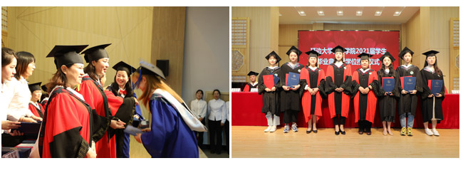 学院领导为全体毕业生扶正流苏并颁发学位证及毕业证