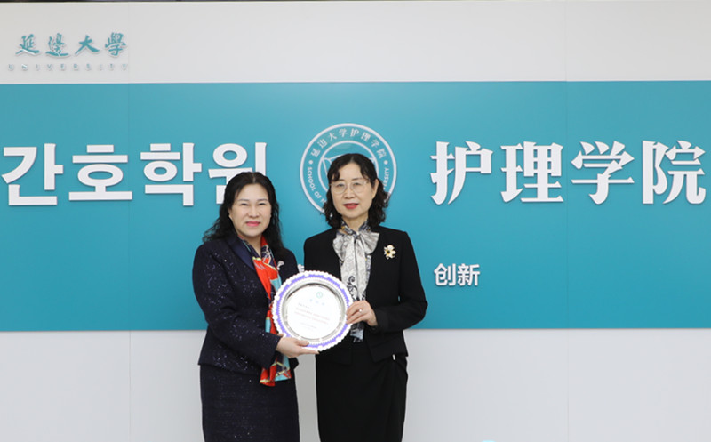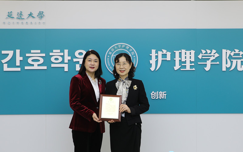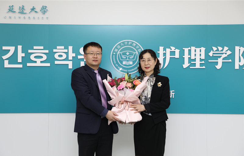 随后,金润浩副院长为李春玉教授佩戴绶带,韩功帅副书记赠送鲜花,金鸿雁书记和崔文香院长分别颁发了延边大学和437437必赢国际官网感谢牌以及纪念品。