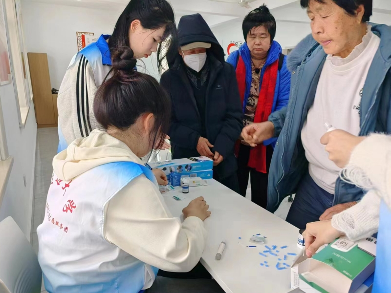 活动伊始,社区工作人员带领服务团成员和积极响应号召的社区中老年人群到达了宣讲场地。主讲人刘世研同学就脑健康的症状危害易感人群及其预防,心肺复苏方法等多种方面展开了讲述,在场居民听得全神贯注,纷纷表示这样的保健宣讲让人受益匪浅。居民表示:“听了今天的宣讲,学到了不少好方法,今后一定要科学饮食、合理运动,养成健康的生活习惯,还要把健康知识传播给周围的人。”最后,志愿服务团成员在社区准备的场地为前来参与活动的居民测血糖,这对检测中老年人群的血糖健康提供了极大依据,并对血糖较高的居民,提供了相关饮食建议。