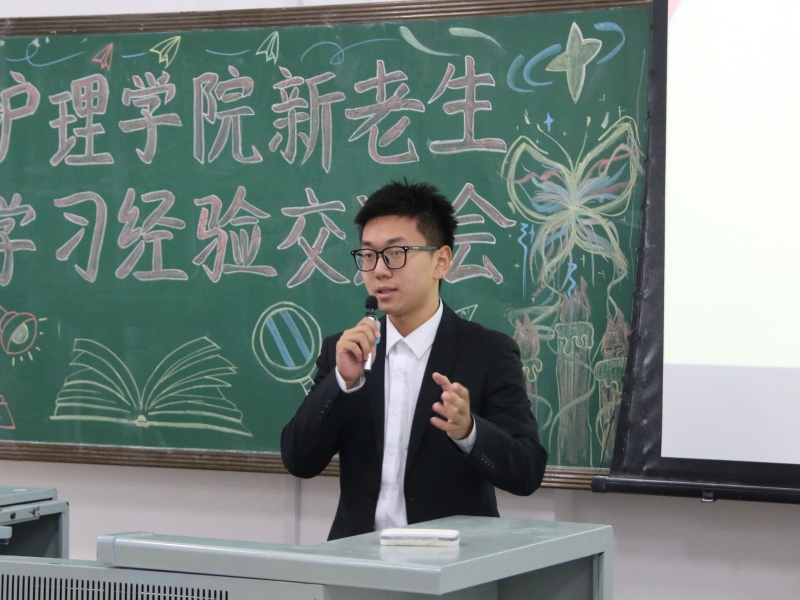 活动伊始,由2021级杨芳懿同学为新生们分享如何缓解学习焦虑。他指出,大学生活中有迷茫、内耗、焦虑,这都是很正常的情况。在生活中,要避免不必要的社交,放平心态、顺其自然;在繁忙学业中,多出去走一走,及时行乐;更要专注于自身,认准目标,抓住机会,不断鼓励自己去见识更广阔的天地。随后,2021级胡新羽同学为新生们分享了护理学专业的专业优势与就业前景,她以诙谐幽默的语言,让大家感受到了我校护理学专业先进完备的教学设施,良好且多面化的就业前景,增进了新生们学习的信心与动力。其次,2021级王鑫同学对综合测评、奖学金、学分绩点转换等问题进行了讲解,让新生们了解如何才能达到高绩点,高综测,拿到奖学金,提醒同学们不仅要努力学习还要积极参加学院的各项活动,充分调动了学生的积极性。接着,2021级杜旭媛同学从五个方面为新生介绍了如何发展为党员及一些相关注意事项,很好地解决了新生对于入党流程的困惑,为新生未来进步发展道路提供了明确方向。紧接着,由2022级王润同学分享学习方法并进行课程介绍,她从八个方面为新生们分享了自己的学习经验,为同学们提供了实用有效的学习方法。在课程介绍的部分中,王润同学为新生们详细地讲解了学分与绩点的关系,让大家对绩点构成有了进一步的了解。最后,由2022级郑涵兮同学为大家分享英语四六级考试相关的内容。她详细介绍了英语四六级考试题型及答题技巧,并督促大家从现在开始积累单词,为英语四级考试做好准备。