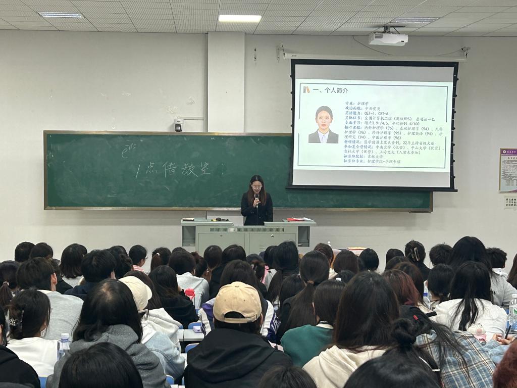 会议伊始,2024届专科班毕业生辅导员介绍了专升本的经验分享,其中包含2021届专科生的升学率、学习方法以及上岸秘诀,她希望大家在备考期间能够学会孤独、制定目标、劳逸结合、节约时间。随后2020级本科毕业生沈美琪同学进行了关于外校保研的经历分享。她主要介绍了在保研中起重要作用的夏令营和九月推免的主要内容和形式,梳理了保研流程的大致时间线;2020级本科毕业生李晓蕾同学分享了面试的准备工作和小技巧,并提醒同学们要及时关注招生信息,时刻做好准备,多学多看,从容应对。会议最后,由学工办主任进行会议总结,他指出同学们要尽早做好规划,合理安排时间去做更多有意义的事情,并鼓励同学们以优秀学生为榜样,向她们看齐,坚定目标,积极进取,希望同学们能在大学期间有所收获,不负时光。