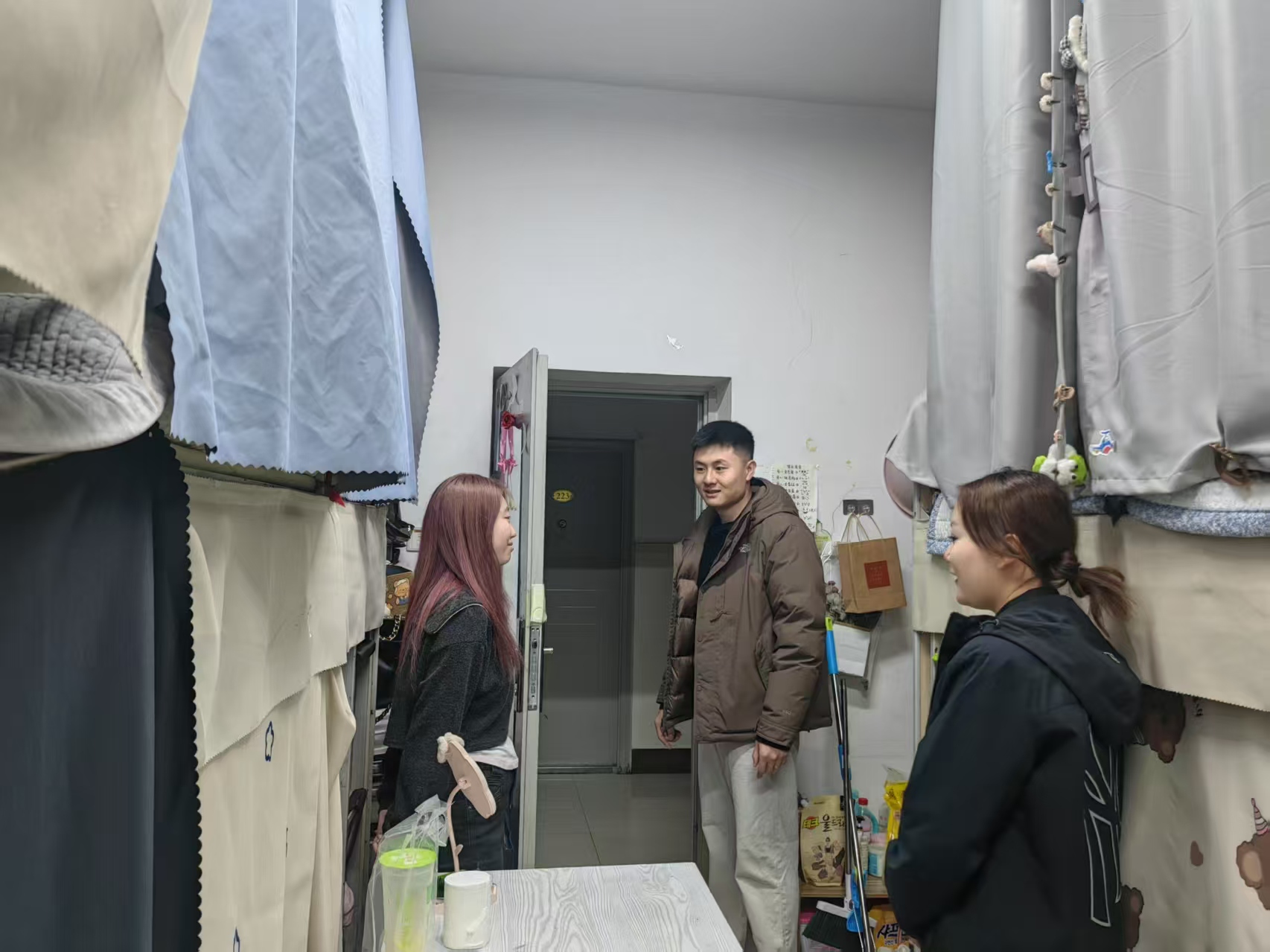 在走访过程中,老师们与同学们亲切交谈,关心同学们的学习生活情况,询问学业规划、生活需求,认真听取了同学们对新学期多方面的意见建议。老师们鼓励同学们在新学期要保持良好的生活习惯和积极向上的心态,努力学习,不断提升自我。