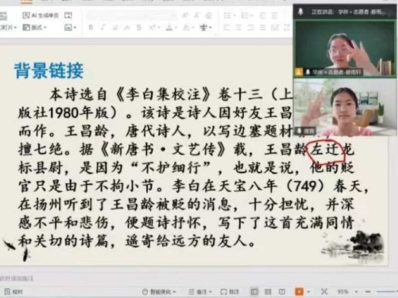 活动期间,护理学子们踊跃参与,与帮扶学生搭建起线上交流桥梁。从学科知识辅导到学习方法分享,从古诗赏析时共探历史人文厚度,到英语学习中借趣味互动化解枯燥,学子们用心备课、耐心讲解,在传授知识的同时,更给予关爱鼓励。课堂上专注的眼神、解题后豁然开朗的表情,成为志愿路上最珍贵的注脚,让他们领悟到教育是相互滋养的过程——在重复讲解中磨炼耐心,于童真视角下重拾纯粹,微小行动播撒着善意,也让他们看见更完整的自己。