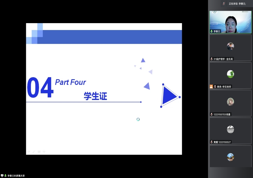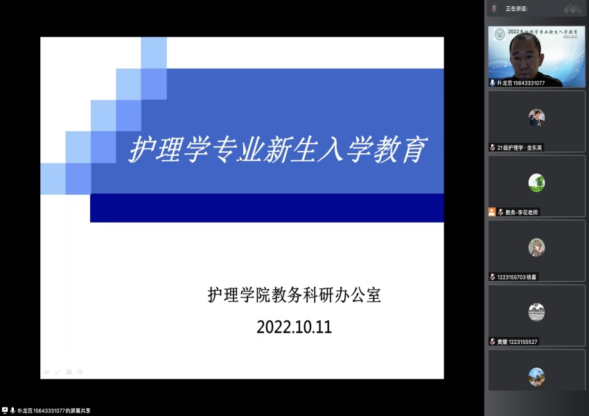 为了帮助2022级新生更好地规划大学生活,明确未来目标和发展方向,加强学生学业指导,进一步为初入大学的同学们答疑解惑,2022年10月11日晚7:00,437437必赢国际官网通过线上开展教务专题讲座。437437必赢国际官网教务科研办公室朴龙范主任、教务科研办公室李春兰老师、教务科研办公室李花老师出席本次讲座,2022级全体新生参加讲座。