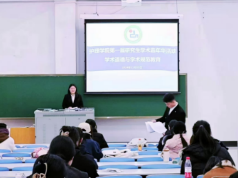 知识竞赛环节中,全院研究生签署了《学术道德规范承诺书》,竞赛题目主要参照《护理理论》、《护理研究方法》、《学术规范与论文写作》等教材,全面考查了研究生对专业知识和学术规范的掌握程度。经过初赛选拔,最终共有 8 名研究生晋级辩论赛。