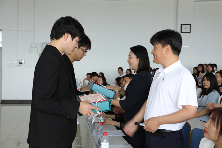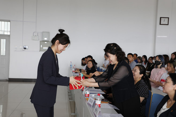 党委书记金鸿雁向优秀学生干部颁发证书及奖品
