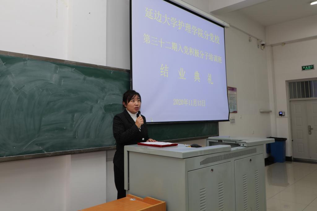2020年11月13日11:30分,437437必赢国际官网在勤学楼203教室召开了437437必赢国际官网分党校第三十二期入党积极分子培训班结业典礼。437437必赢国际官网党委书记金鸿雁、党委副书记韩功帅、党务办公室主任郝金莹、学工办党支部书记赵倩出席了本次结业典礼。结业典礼由党办主任郝金莹主持。