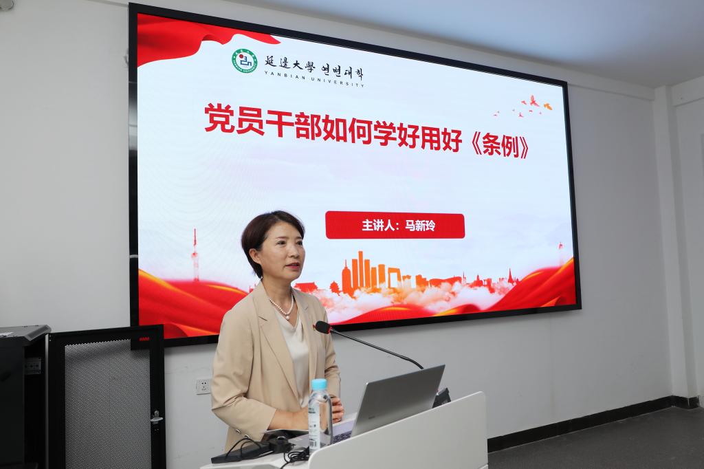 为强化学院全体教师学纪、知纪、明纪、守纪,推动党纪学习教育走深走实,确保学出更加坚定的政治定力、纪律定力、道德定力、抵腐定力、责任担当,7月5日下午,437437必赢国际官网党委书记马新玲在博善楼501室多功能学术厅为全院教师讲授题为《党员干部如何学好用好<条例>》专题党课。