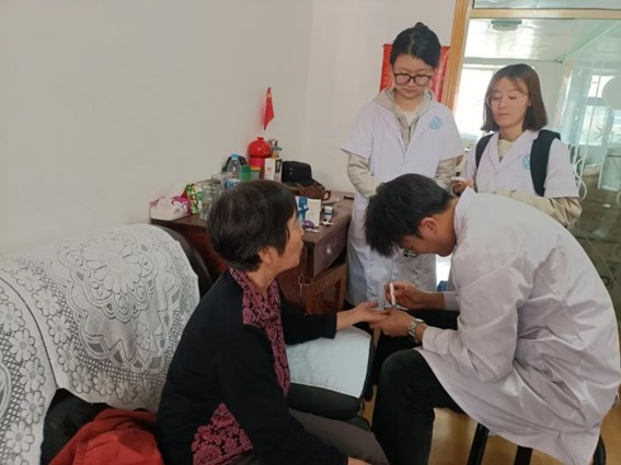 活动当天,志愿者们分为两组,有序开展了测量血压、手指操教学等志愿服务。志愿者们在社区活动广场为居民测量血压,并结合测量结果为他们提供健康生活的建议。随后,志愿者们为老人们详细介绍并演示了老年手指操的方法步骤,耐心地带领他们反复练习。接着,志愿者们跟随社区工作人员前往居民家中开展入户健康义诊,为居家老人测量血压,详细讲解了慢性病的常见症状、预防与控制方法等相关知识,让老人们对慢性病有了更深入的认识。志愿者们热情负责的服务态度赢得了居民们的一致好评。