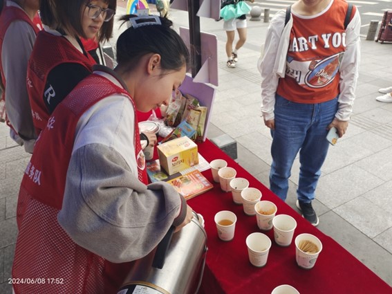 活动伊始,进行了第一轮抽奖活动,志愿者们积极讲述抽奖活动规则,游客们有序的排队参加活动,领取精美伴手礼。随后,志愿者们分工有序、文明礼貌,主动服务游客、提供旅游咨询,为其指引方向、介绍延吉特色旅游景点、美食,为有需要的游客进行学校的预约指导。其次,志愿者们还提供免费寄存行李的服务,为需要的游客提供热大麦茶,医药箱、湿巾等物资。同时提供延吉特色食物品尝等等更有温度的便民服务。