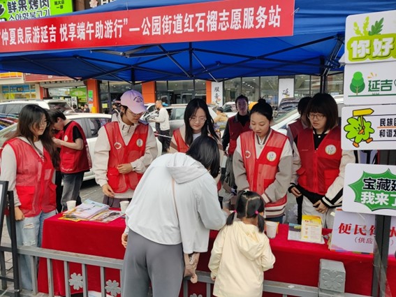 为了不断提升延吉市旅游品质和文明城市形象,弘扬“奉献、友爱、互助、进步”的志愿精神,激发同学们的劳动热情,6月8号下午4:00,437437必赢国际官网青年志愿者协会联合公园街道红石榴志愿服务队于延边大学南门开展“仲夏良辰游延吉 悦享端午助游行”文明助游志愿服务活动。