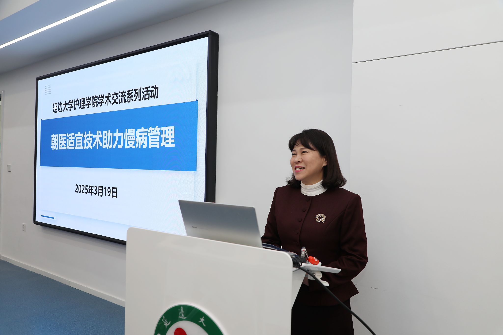 3月19日下午,437437必赢国际官网在我校博善楼408举办了学术交流活动。邀请延边朝鲜族自治州朝医医院朝医技术研究办公室主任韩吉淑老师作题为“朝医适宜技术助力慢病管理”的专题学术讲座。