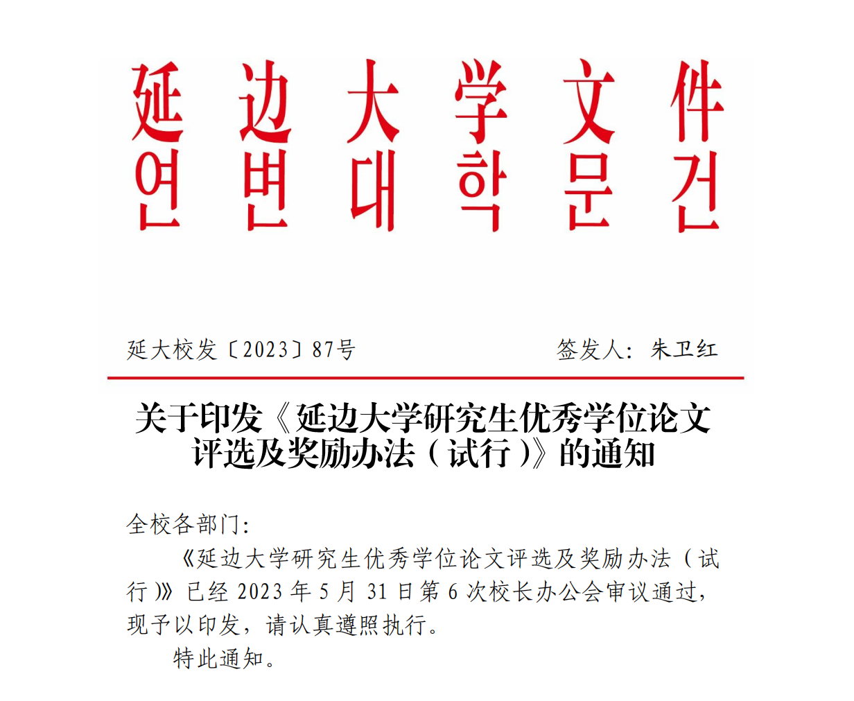 关于印发《延边大学研究生优秀学位论文评选及奖励办法(试行)》的通知